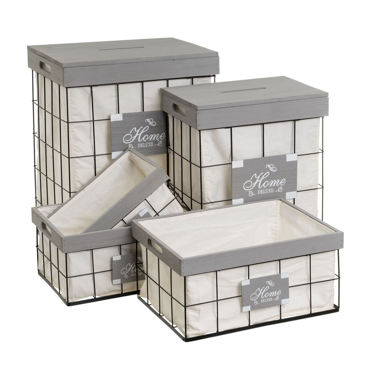 Cesto para la Ropa Gris Poliéster Hierro Madera MDF 800 ml 2 L 3 L 6 L 1,2 L 42 x 31 x 54 cm