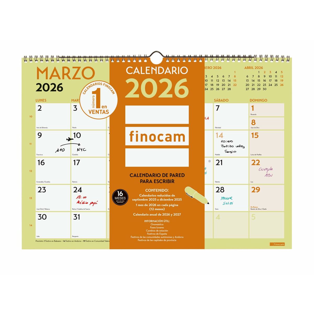 Calendario de pared Finocam Papel 2026 26,5 x 24,5 cm
