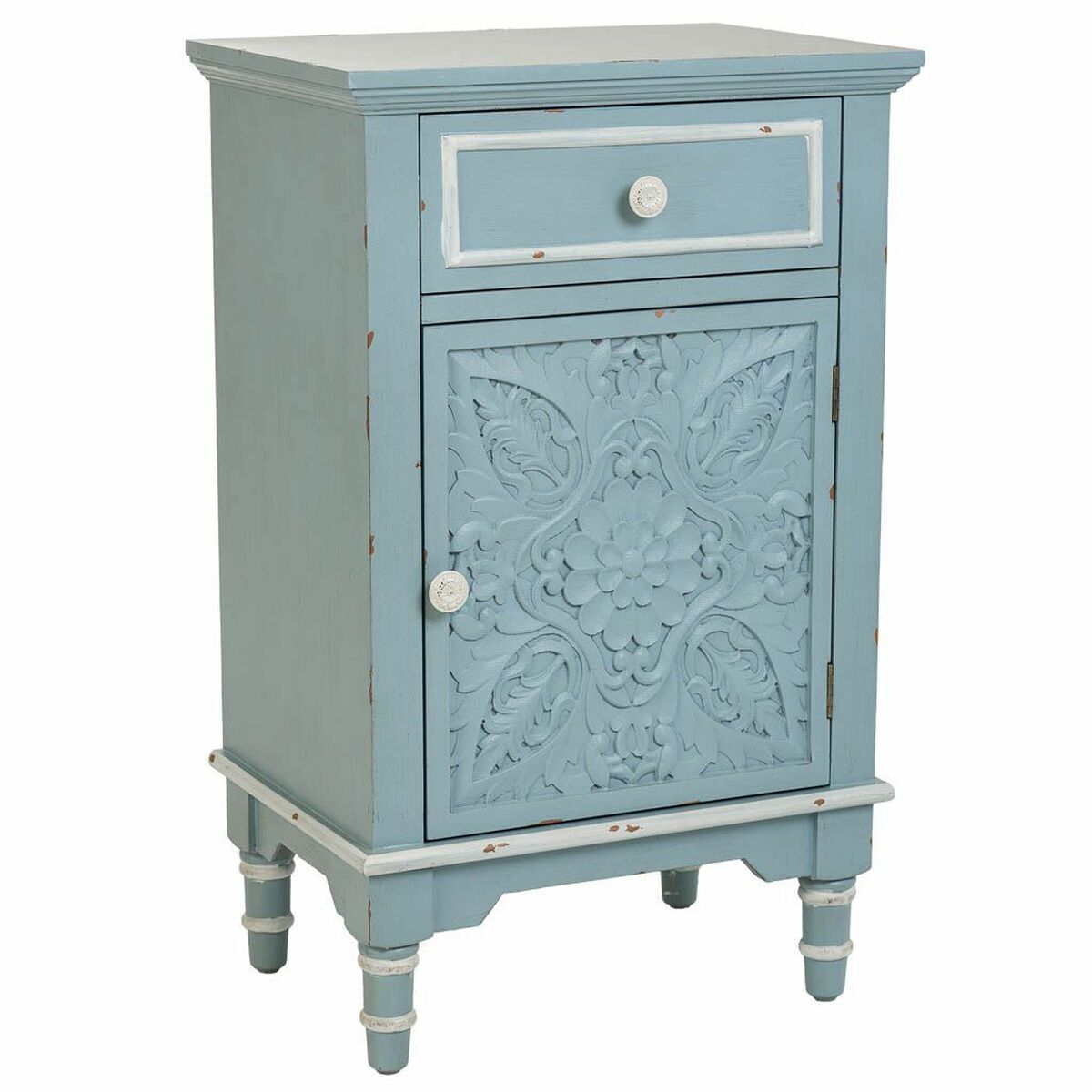 Mesita de Noche Alexandra House Living Azul Blanco 32 x 74 x 46 cm