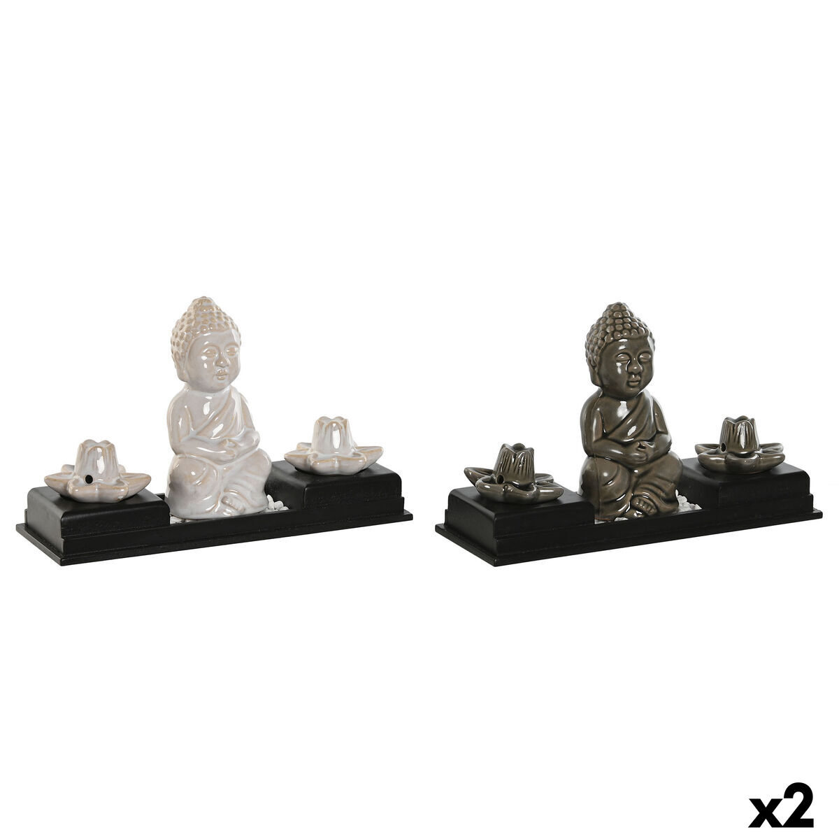 Quemador de esencias Home ESPRIT Cerámica Madera MDF Buda 24 x 8 x 14 cm (2 Unidades)
