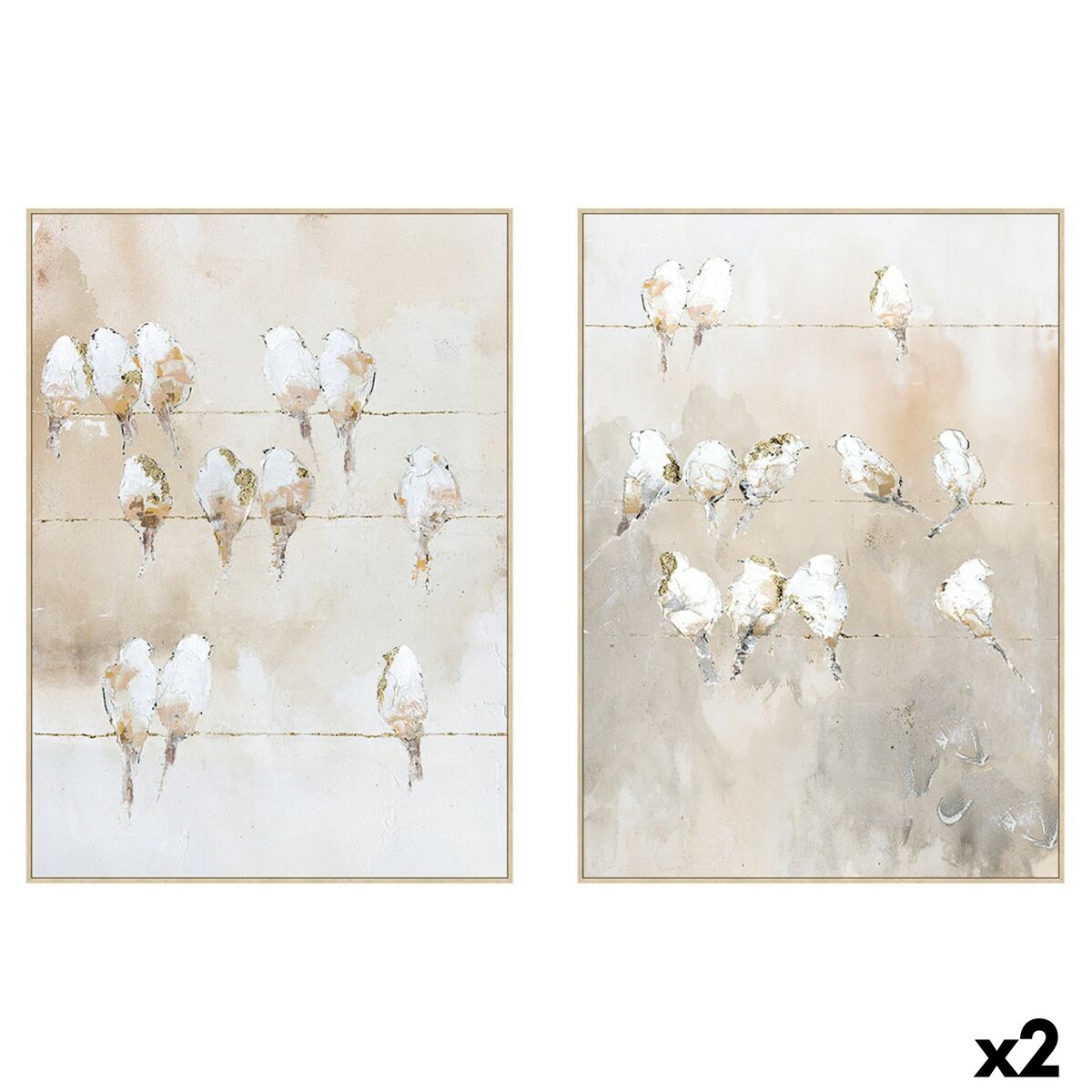 Lienzo Home ESPRIT Blanco Beige Gris Dorado Pájaros Escandinavo 103 x 4,5 x 143 cm (2 Unidades)