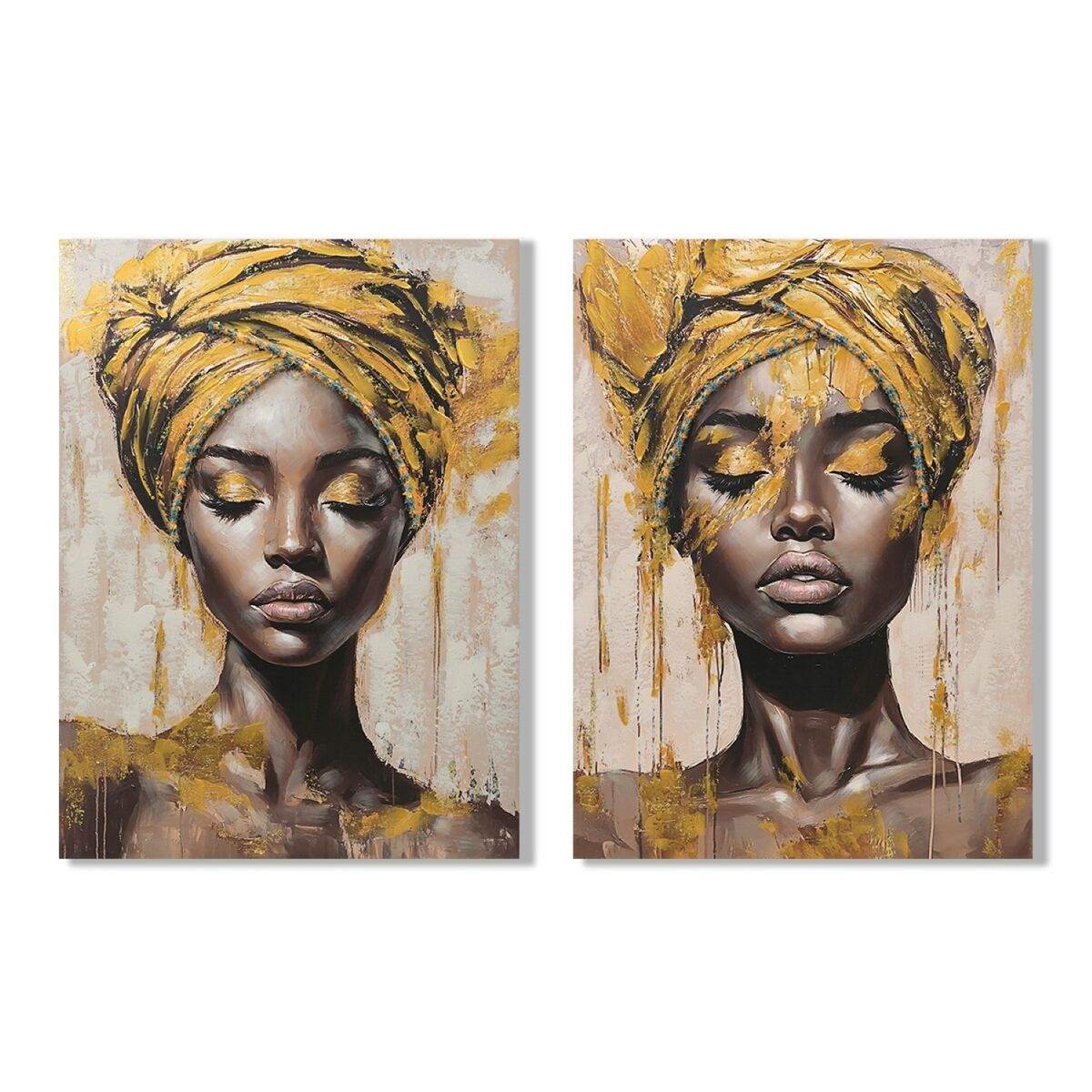 Lienzo Home ESPRIT Marrón Dorado Colonial Africana 90 x 3 x 120 cm (2 Unidades)