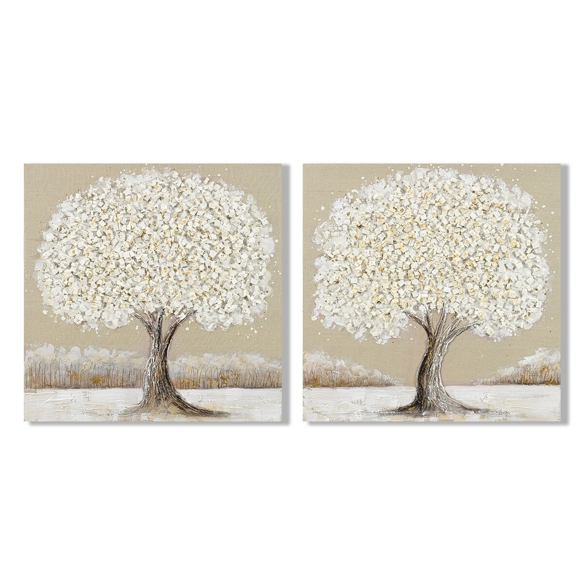 Lienzo Home ESPRIT Blanco Beige Árbol Tradicional 100 x 3 x 100 cm 102 X 3 X 102 CM (2 Unidades)