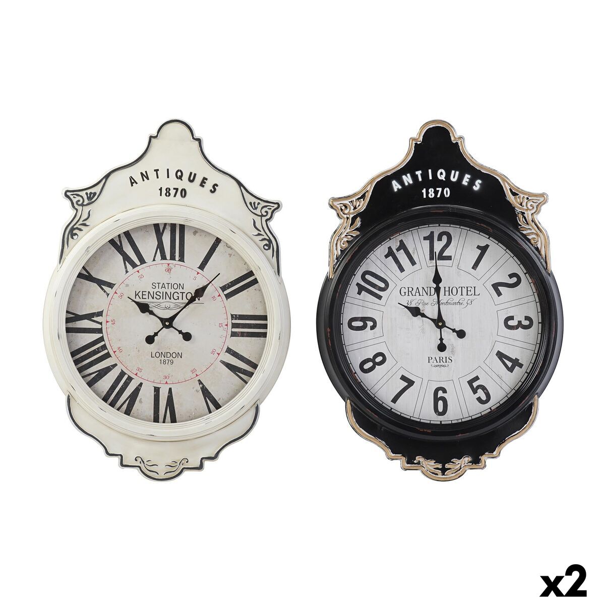 Reloj de Pared DKD Home Decor Negro Metal Blanco Vintage Madera MDF (58 x 8 x 58 cm) (2 Unidades)