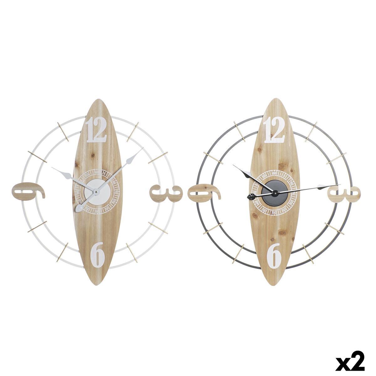 Reloj de Pared DKD Home Decor Blanco Natural Hierro Madera MDF 61 x 4,5 x 66 cm (2 Unidades)
