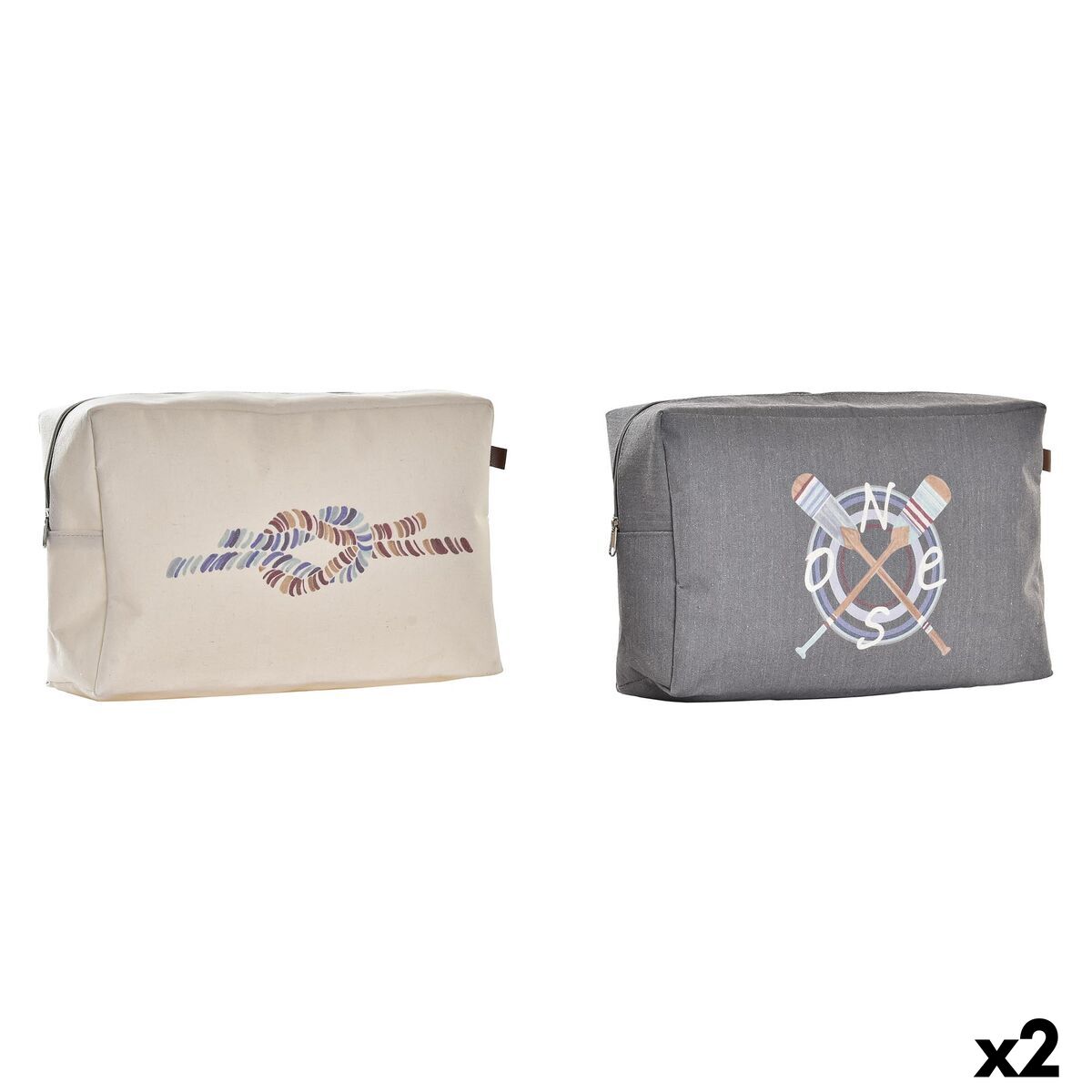 Neceser DKD Home Decor Blanco Gris (2 Unidades)